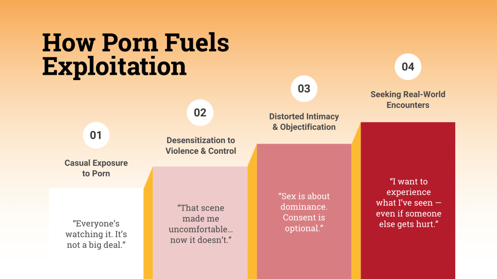 Research backs this up. Repeated exposure to violent or degrading porn desensitizes the brain and erodes empathy. Over time, it conditions consumers to view people as objects — and primes them to act out what they’ve consumed.